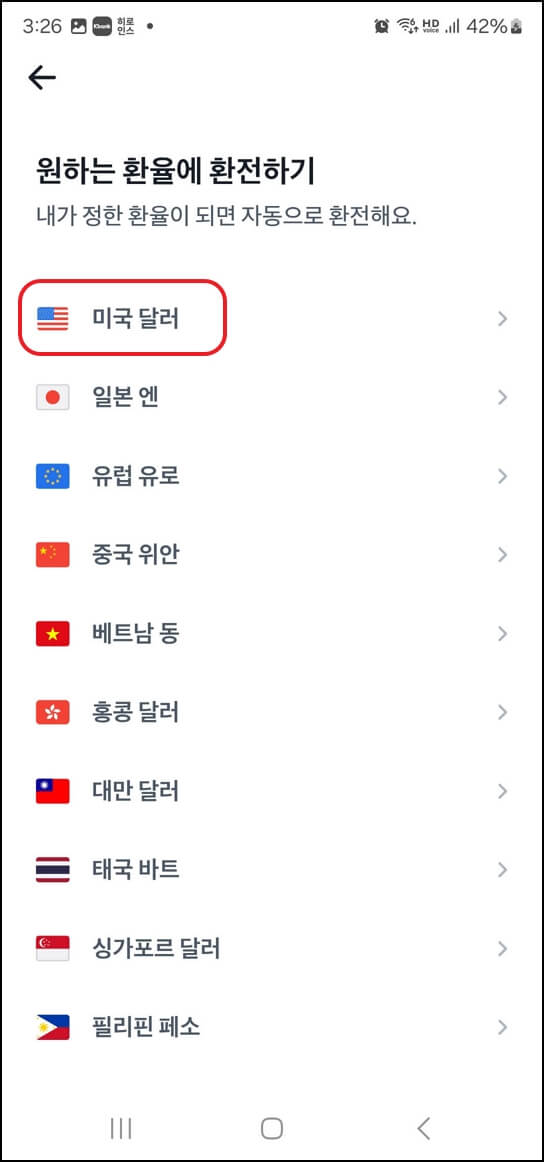 여기서는 미국 달러를 자동 매수매도 설정하는 방법을 알아보도록 하겠습니다. 아래의 순서대로 진행하시면 쉽게 자동 매수매도 설정을 할 수 있어요.